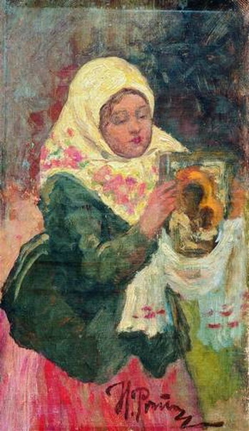 ![]() Этюд с иконой «Спас». И. Е. Репин. 1880-е. Этюд. Холст, масло. 30,4х33,1 см Частное собрание |