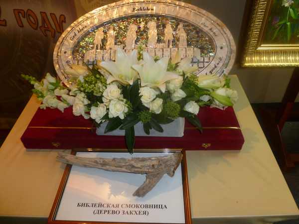 Особого внимания были удостоены такие экспонаты, как перламутровая шкатулка из Вифлеема, подаренная Обществу лидером Палестинской национальной администрации Махмудом Аббасом, книги о первых Председателях ИППО — великом князе Сергее Александровиче и великой княгине Елизавете Федоровне, изданные благотворительным фондом «Возрождение Николо-Берлюковского монастыря» под руководством действительных членов ИППО А. Н. Панина и С. Я. Ваксмана. Благоговейное отношение вызвала частица дерева Закхея, произрастающего в Иерихоне и находящегося под патронатом Императорского Православного Палестинского Общества.