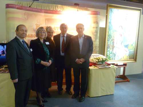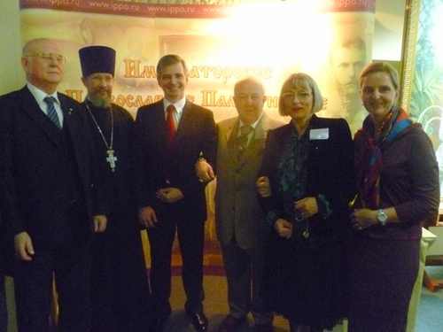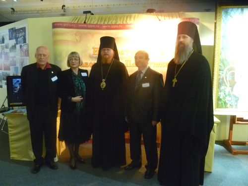 У стенда ИППО Святейшего встречала заместитель Председателя Императорского Православного Палестинского Общества, помощник Председателя Счетной палаты Российской Федерации Е. А. Агапова. От имени Сергея Вадимовича Степашина она поздравила Святейшего с отмечаемыми праздниками и тепло поблагодарила за согласие принять участие в работе юбилейной конференции ИППО в июне 2012 года. Е. А. Агапова также проинформировала Святейшего, который возглавляет Комитет Почетных членов ИППО, о широкомасштабной подготовке к празднованию 130-летия Общества, в том числе о ходе строительства культурно-духовного центра в Вифлееме. Она представила новую работу народного художника России, действительного члена ИППО Василия Нестеренко «Великокняжеская чета». Известный живописец вдохновенно работает над серией портретов Великого князя Сергия Александровича и Великой княгини Елизаветы Федоровны. Святейший Патриарх Московский и всея Руси Кирилл отметил, что эти работы должны быть представлены в Сергиевском подворье в Иерусалиме. Его Святейшество тепло пожелал всем членам Общества дальнейших успехов в укреплении духовных связей России со Святой Землей.