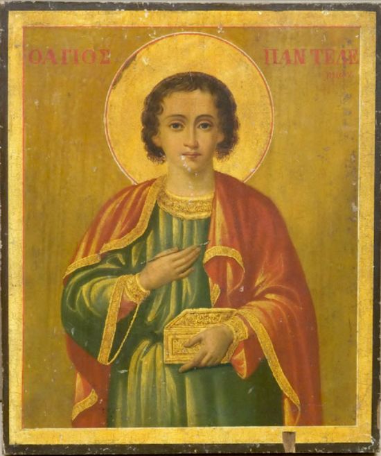 Илл. 11. Икона "Святой Пантелеймон". 1864 г. Афон. 13,3х26,5х2,5