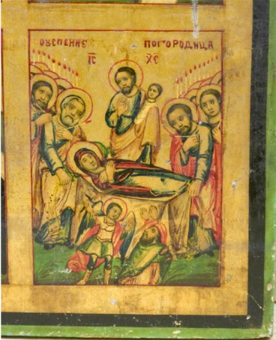 Илл. 8. Успение Богородицы. Фрагмент чегырехчастной иконы с изображением праздников. Конец ХIХ в. Иерусалим. Фрагмент