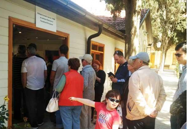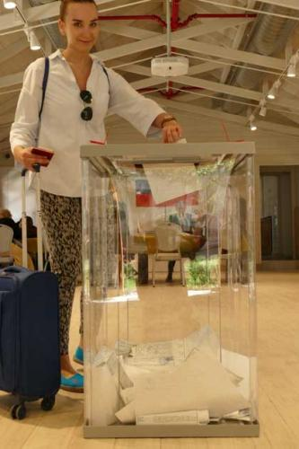 Голосовали на Подворье и молодые туристы с чемоданами. А вскоре избиратели на участок стали прибывать целыми автобусами – путешественники, совершающие паломничество на Святую Землю, утром поклонялись Храму Гроба Господня, а затем направлялись голосовать. В какие-то моменты людей на Подворье становилось так много, что избиратели буквально выстраивались в очередь за бюллетенем для голосования.