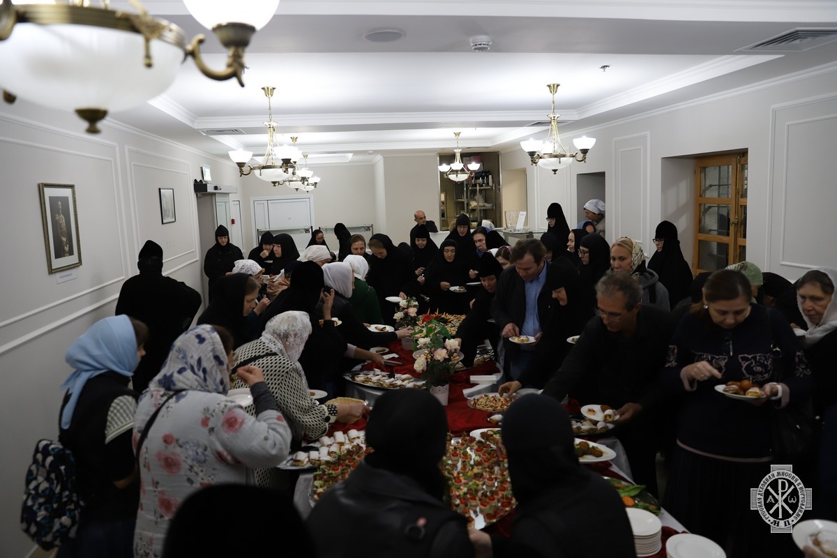 По окончании чтений все участники вечера были приглашены в трапезный зал Сергиевского подворья на чаепитие.
