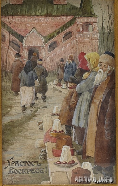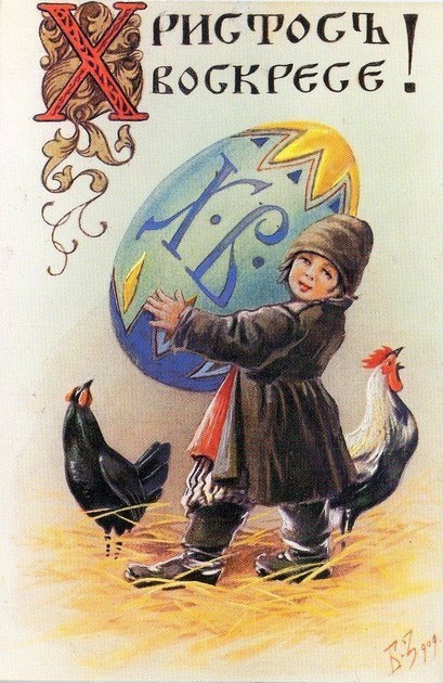 Пасхальная открытка по рисунку Бориса Васильевича Зворыкина (1872-1942). 1900 г.