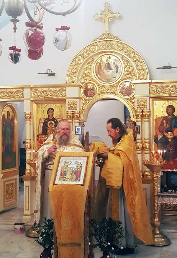 Служение литургии возглавил исполняющий обязанности настоятеля храма, основатель отделения ИППО в Турецкой Республике иерей Георгий Сергеев. По окончании Божественной литургии отец Георгий тепло приветствовал иеромонаха Никона, выразив благодарность за поддержку, которую ИППО оказывает приходам Московского Патриархата на территории Турции.