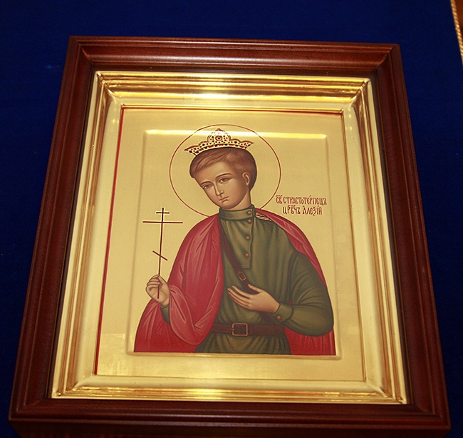 На молебен была привезена чтимая икона цесаревича из Общества людей, страдающих гемофилией, а также из храма Новомучеников и исповедников Российских в Бутово была доставлена святыня – часть шали, принадлежавшей Алексию, которую связали для него сестры во время пребывания в ссылке в Тобольске. На молебне молился Ю. А. Жулёв, руководитель Общества людей, страдающих гемофилией. Благодаря Юрию Александровичу, сегодня больные могут получать необходимые дорогостоящие медикаменты бесплатно. Сегодня в нашей стране по официальной статистике насчитывается более 8 тысяч человек, больных этим страшным недугом.