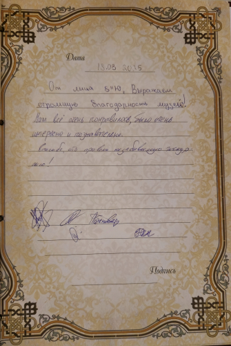 \Ребята осмотрели экспозицию и прослушали экскурсию директора Музея Григория Маневича об истории паломничества и русского присутствия в Святой Земле, а также о жизни и деятельности первых Председателей ИППО Великого Князя Сергия Александровича и Великой Княгини Елизаветы Федоровны. Особый интерес молодых исследователей вызвали уникальные предметы, связанные с благотворителями Святой Земли, исторический макет Барградского подворья ИППО и паломнические реликвии, представленные в экспозиции.