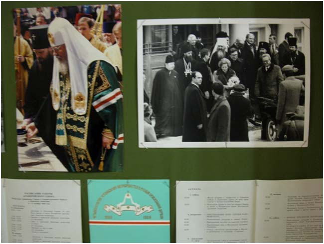 Далее в витринах серия фотографий и документов, которые посвящены трудам архимандрита Алексия на ответственном послушании наместника Троице-Сергиевой лавры (с 1984 г.) и председателя Хозяйственного управления Московской Патриархии (с 1988 г.). Подготовка к проведению торжеств, посвящённых 1000-летию Крещения Руси, во многом легла на плечи наместника Лавры: на снимках он у телефона, в окружении мирян, священнослужителей и официальных лиц – нужно было решать огромное количество вопросов, ведь по существу впервые государство присоединяло свои труды к проведению церковного праздника.