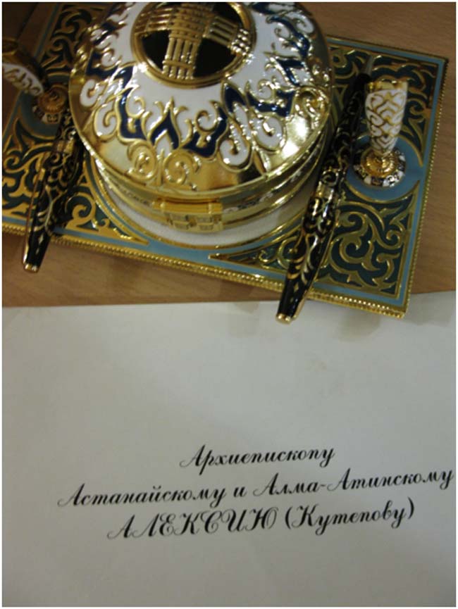 Далее в витринах – затейливые подарки, присылаемые владыке до сих пор из Казахстана. Его служение на Алма-Атинской кафедре началось в 1990 году, и за время десятилетнего служения архиепископа Алексия количество приходов возросло с 69 до 103, количество монастырей – до 7, количество священнослужителей возросло со 109 до 197 человек. До сих пор владыке присылают поздравления из далёкого Казахстана, неизменно выражая благодарность за его доброе христианское служение.