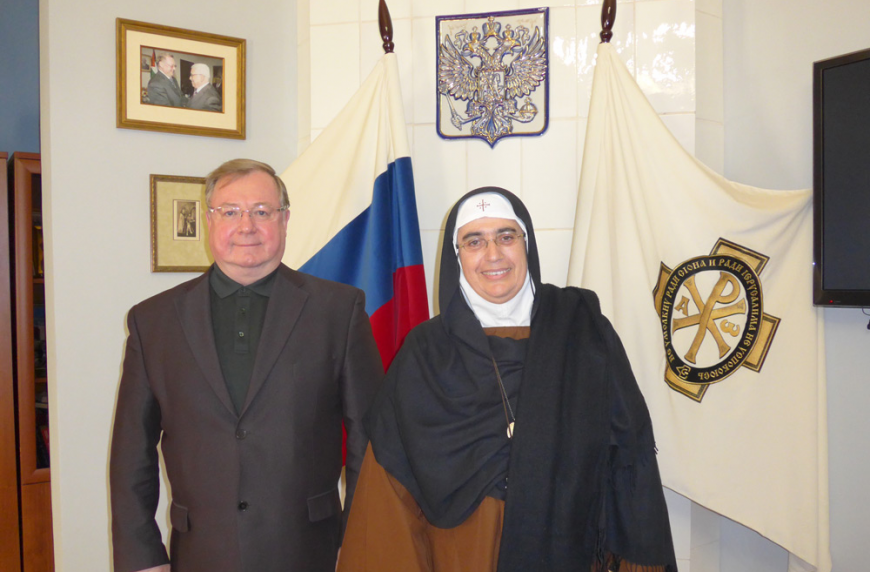 Поводом для нынешнего визита католической монахини в Москву стало приглашение Ассоциации юристов России и вручение ей как одному из номинантов высшей юридической премии «Фемида». Эта престижная премия вручается ежегодно и в этом году посвящена 70-летию ООН и 20-летию с момента учреждения данной премии. Сопредседателем юристов России является Сергей Вадимович Степашин. О церемонии вручения премии, которая прошла 17 февраля в Москве, сайт ИППО расскажет отдельно.