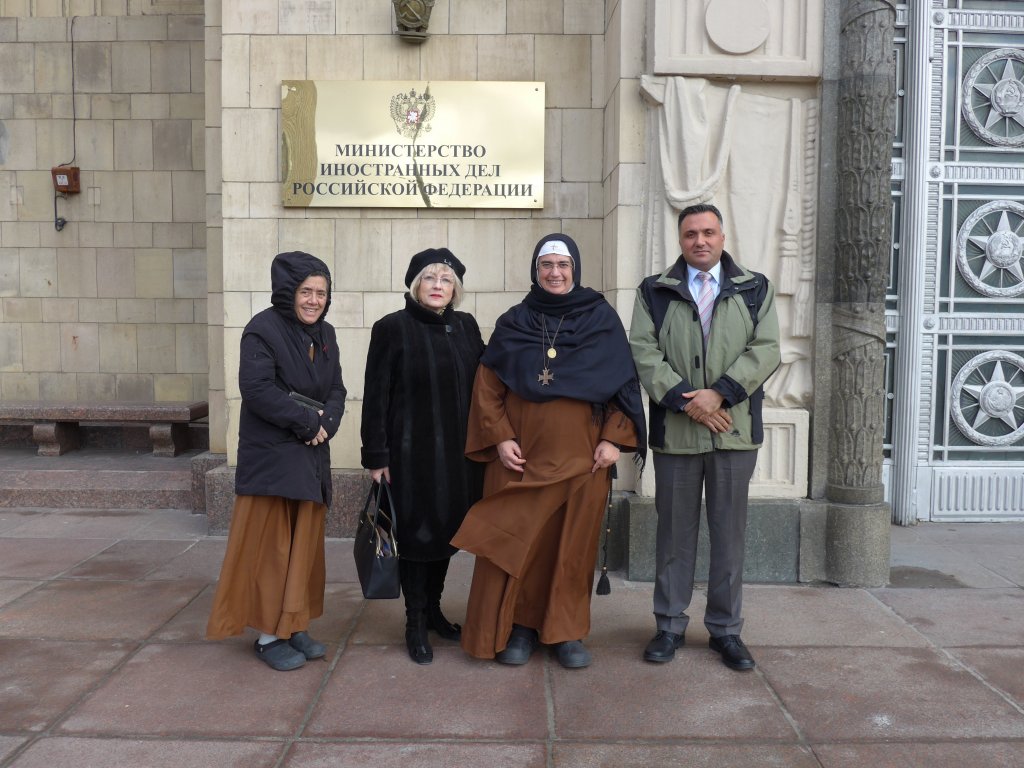 По прилету в Москву, 17 февраля, матушка Агнесс была принята в Министерстве иностранных дел РФ спецпредставителем Президента РФ по странам Ближнего Востока и Северной Африки, заместителем министра иностранных дел России и зампредом ИППО Михаилом Леонидовичем Богдановым.