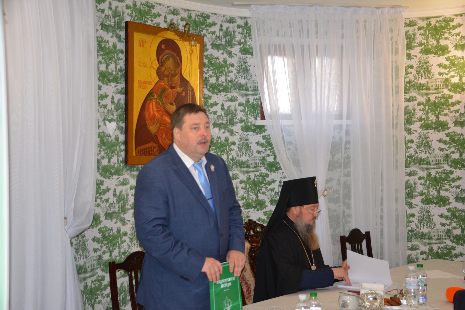 В конце презентации Николай Дымченко обратился со словами благодарности к Архиепископу Савве за ту помощь, которую епархия оказывает в деле сохранения историко-культурного наследия нашего края. Николай Дымченко вручил памятный знак «100 лет Бредовскому походу», участникам мероприятий, проходивших в феврале с.г. по увековечению памяти 100-летия окончания Гражданской войны.