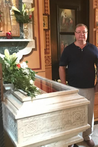 Страшный и удивительный путь останков убитых в ночь на 18 июля 1918 года в шахте под уральским городом Алапаевском мучениц начался в июле 1919 года, прошел через Читу, Харбин, Пекин, по Тихому и Индийскому океанам, Суэцкому каналу и завершился на Святой Земле в Иерусалиме. Подвиг перенесения их мощей взял на себя игумен Серафим (Кузнецов), настоятель Серафимо-Алексеевского скита Белогорского Свято-Николаевского монастыря.