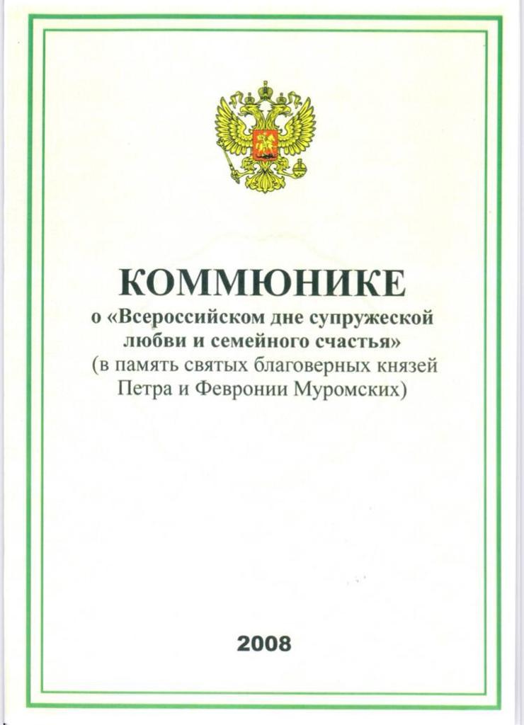 Ежегодно 8 июля в России отмечается День семьи, любви и верности. В этот день Русская православная церковь отмечает день памяти святых Петра и Февронии, которые издревле считались на Руси покровителями семьи и брака.