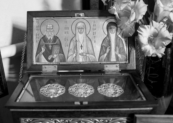В монастырском храме находятся привезенные из Иерусалима частицы святых мощей преподобномучениц Елизаветы Федоровны и Варвары и священноисповедника Сергия (Сребрянского).