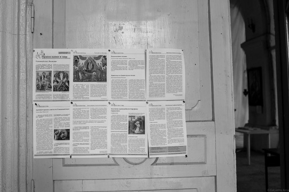 На дверях в Троицкий собор висит газета «Православие и мир».