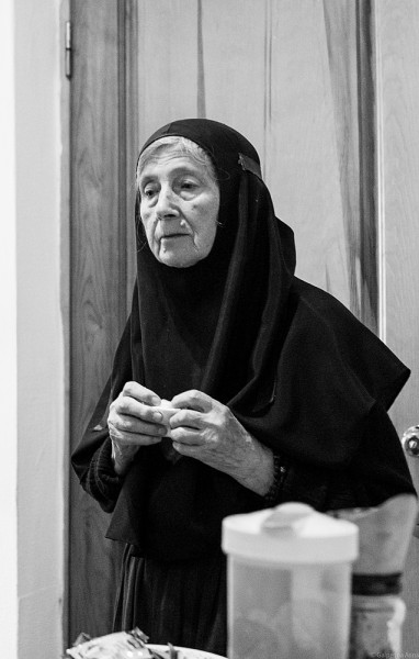 Нас усадили за стол с монахинями и накормили обедом.Матушка Олимпиада, игуменья обители, читает благодарственные молитвы после еды.