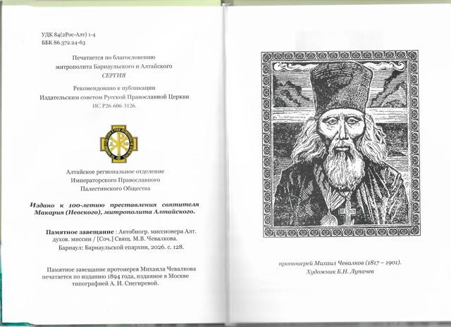 Автобиографическая повесть протоиерея Михаила Чевалкова — сочинение, которое по праву считается важной вехой в истории региональной культуры. Исследователи отмечают, что это: – первое литературное произведение на национальном языке; – начало алтайской словесности достаточно высокого художественного уровня; – первое агиографическое произведение на Алтае.