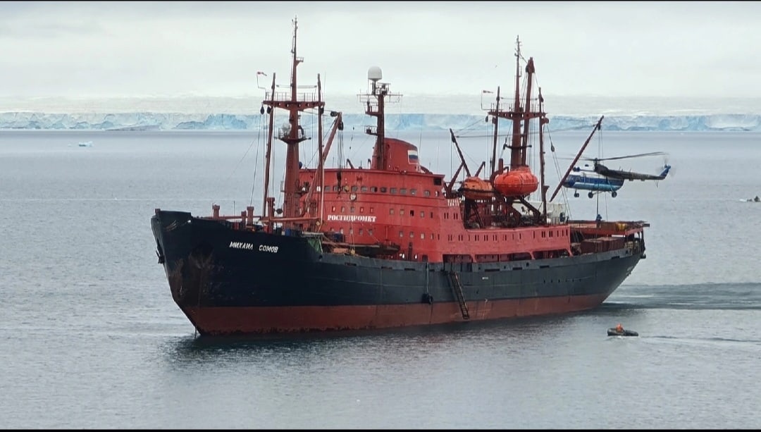 Научно-экспедиционное судно Росгидромета «Михаил Сомов», на котором в Арктику отправилась вторая экспедиция писателей и художников.