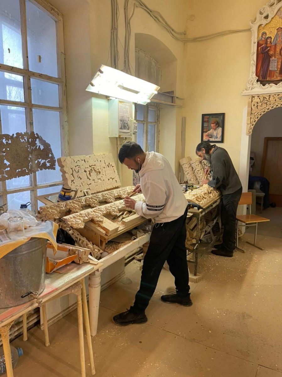 Члены регионального отделения ИППО также посетили Уфимскую иконостасную мастерскую при храме, где братья вручную изготавливают максимально насыщенные многоуровневой резьбой, иконостасы, опираясь в своей работе на опыт древних мастеров со Святой горы Афон.