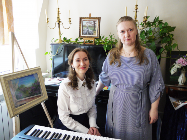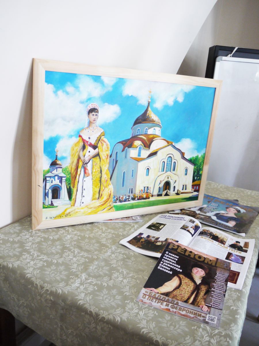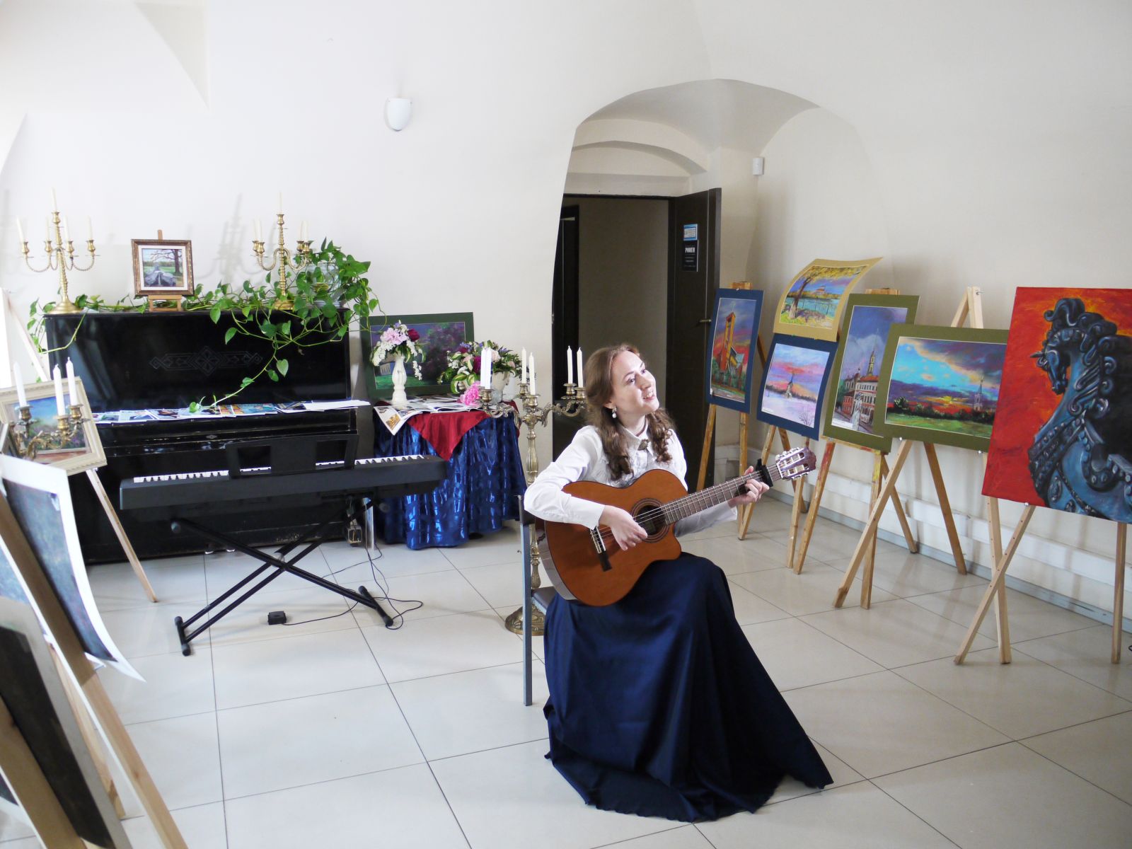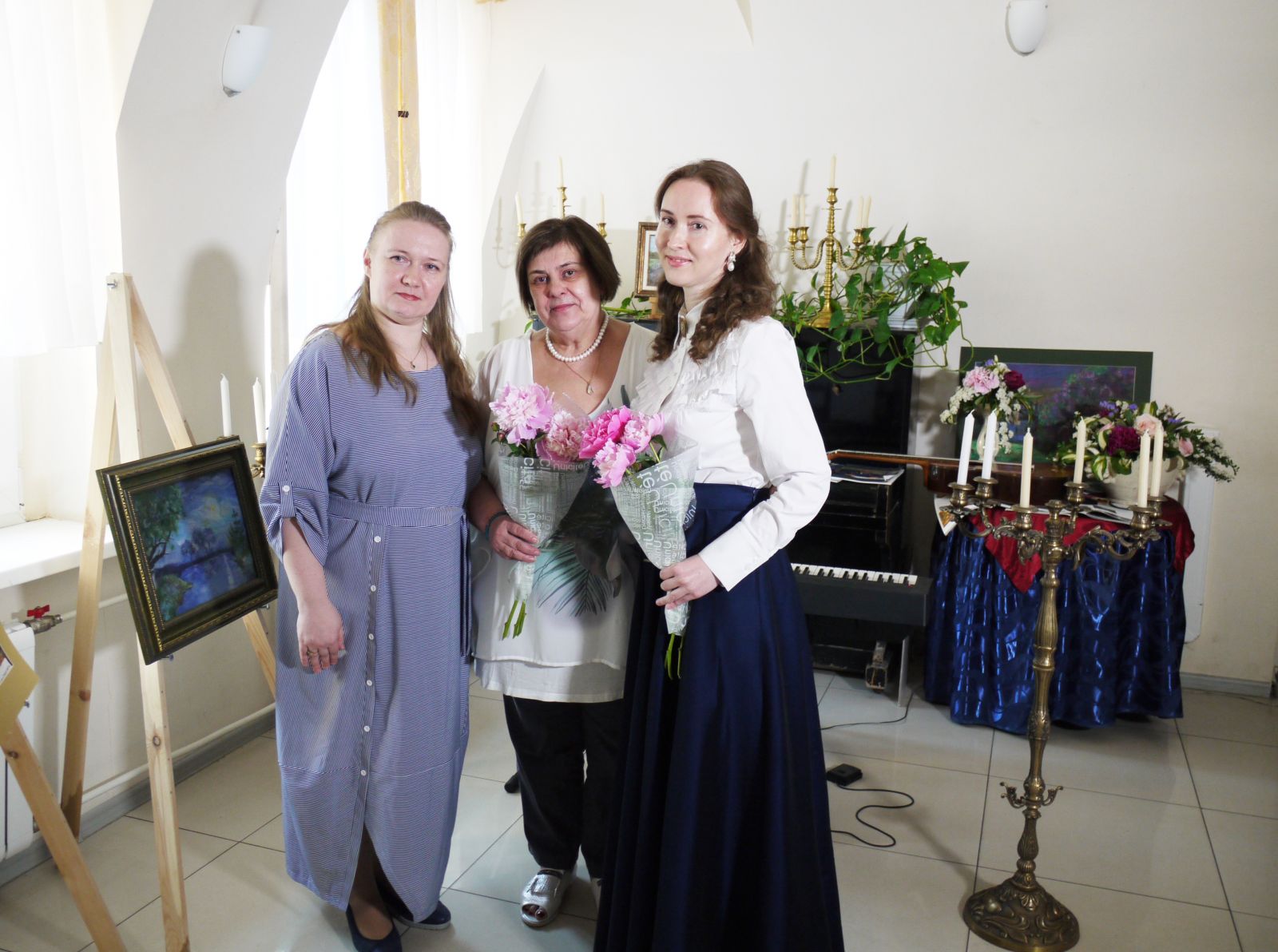 В зале института, помимо работ Владимира Васильева (одна из его картин была посвящена приезду Елизаветы Федоровны в Тверь), были представлены работы Елены Беловой и Татьяны Мелиховой. Они выполнены в необычной технике (живопись шерстью) и являются своего рода уникальными иллюстрациями к романсам, создающими неповторимую атмосферу.
