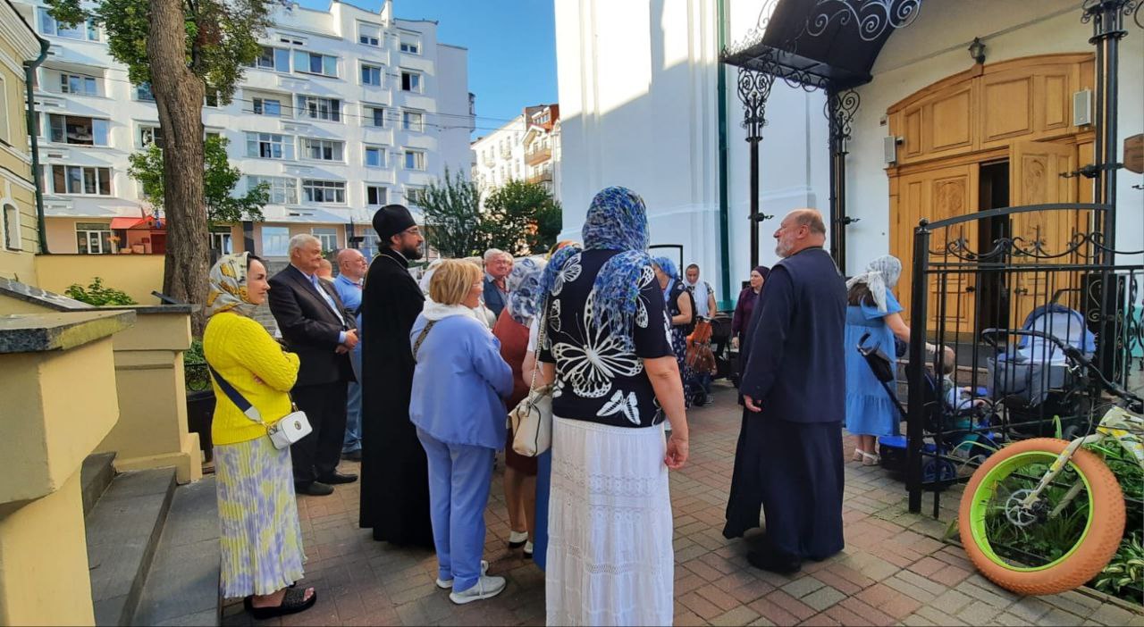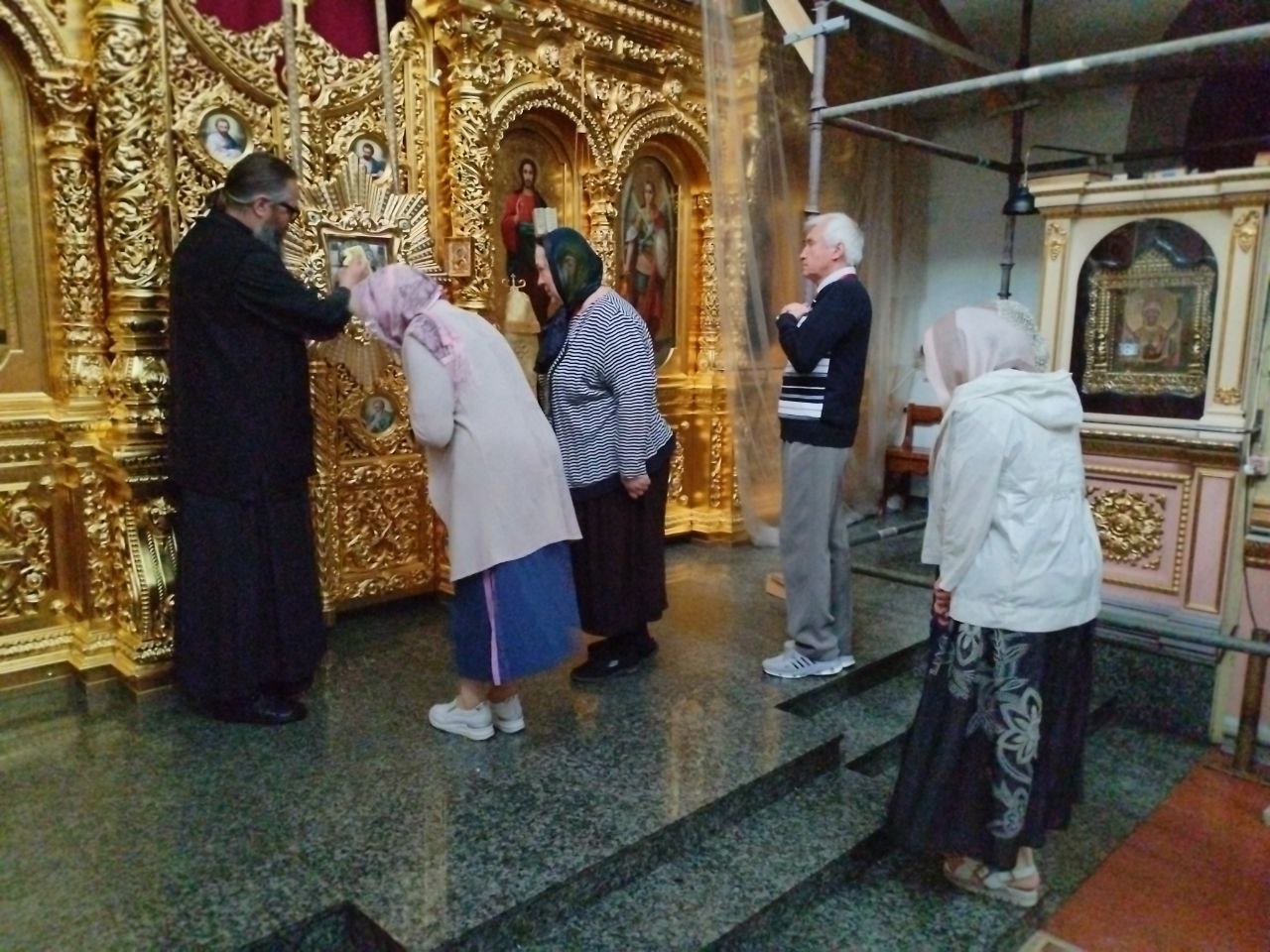 В соборном храме обители богомольцы пропели тропарь, кондак и величание, а игумен Серафим прочёл молитву перед почитаемым образом Божией Матери. В монастырской трапезной паломникам был предложен обед, после которого оставалось немного времени, чтобы насладиться красотой монастырской территории, уходящими вдаль бескрайними просторами и старым руслом Днепра, а также аистом, который, не взирая на гостей, продолжал заниматься благоустройством своего гнезда.