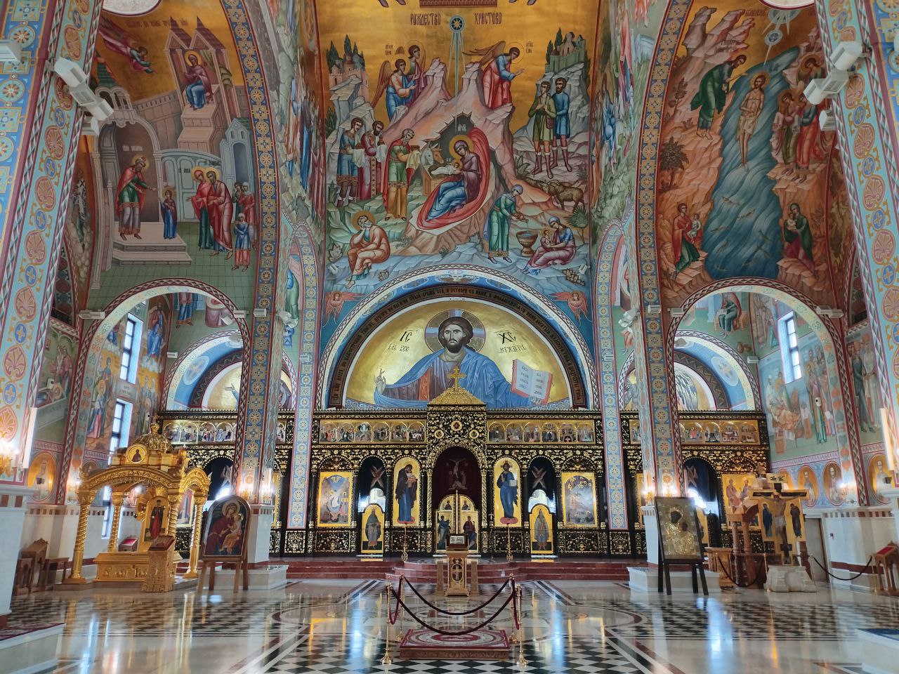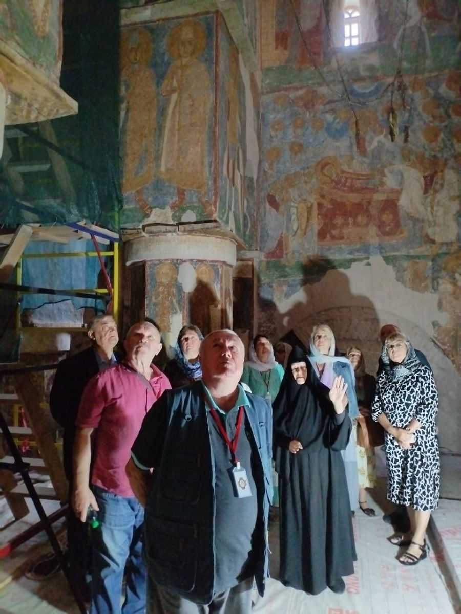 По окончании богослужения и монастырской трапезы паломники стали очевидцами совершаемого в монастырях по воскресным и праздничным дням «Чина о Панагии» и посетили древний Преображенский собор, специально открытый для нашей группы: несмотря на продолжающиеся в храме реставрационные работы, мы смогли воочию увидеть настенные росписи XII столетия.