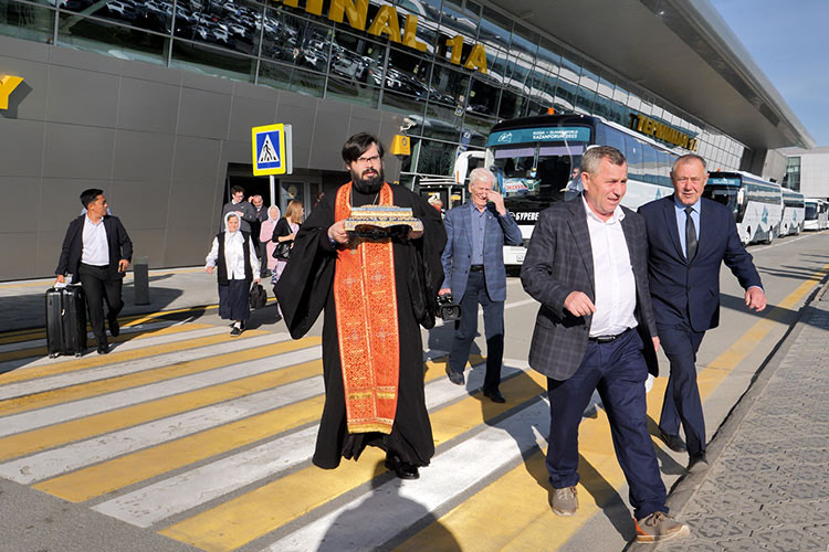 После этого был долгий перелет из Италии через Турцию в Россию, в Мамадыш. В аэропорту делегацию встречал председатель Татарстанского регионального отделения Императорского Православного Палестинского Общества Кузьма Николаевич Морозов с действительными членами Татарстанского ИППО, благочинный Мамадышского района, настоятель храма преподобной Ксении Римляныни иерей Олег Малышев с прихожанами и приглашенные гости.