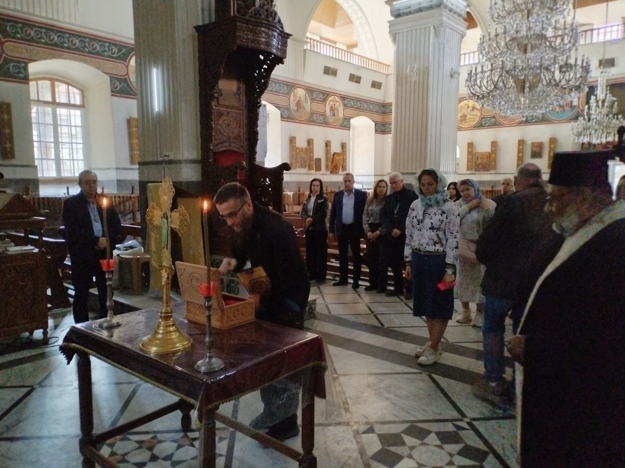 Хомс. Автор статьи перед ковчегом с мощами Севастийских мучеников