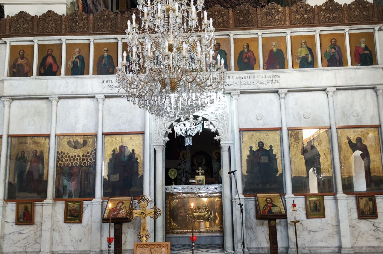 Храм 40 Севастийских мучеников находится совсем неподалёку. Удивил иконостас и иконы в нём: всё это дар русских благотворителей полуторавековой давности. Иконостас был подарен Императорским Православным Палестинским Обществом в 1898-1899 гг. Иконы прекрасны, но уже нуждаются в реставрации. В настоящее время ИППО собирает денежные средства для того, чтобы работы по реставрации начались и были завершены в 2026 году. Речь идет о 60-и иконах. Реставрировать их будут сирийские иконописцы-реставраторы. Работы оценены в 19.750 долларов, из которых пока собрано 13.000. Поиск средств продолжается, и каждый желающий может принять участие в этом добром деле. Испытывает нужду и храм святого мученика Иулиана, но средства нужны не на ремонт, а на организацию мастерских: настоятель храма намерен создать рабочие места, чтобы люди могли себе хоть немного заработать на хлеб. Послевоенное время – сложный период в истории всякого государства и народа. И слава Богу, что есть такие священники, которые думают о своих прихожанах и согражданах.