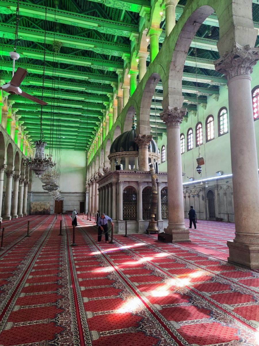 Здесь же рядом с рынком находится, пожалуй, самая необычная святыня Сирии – часть главы Иоанна Предтечи, почитаемого в исламе как пророк Яхья. Останки главы покоятся в часовне, расположенной под сводами огромной мечети Омейядов, являющейся четвертой по значимости в исламе. В праздники мечеть может вместить до 25000 верующих. По мусульманскому преданию, именно на минарет этой мечети, который так и называется – минарет Исы (Иисуса), Спаситель спустится в конце времён перед началом Судного дня. В мечеть мы пришли пораньше, а потому оказались не просто первыми, а почти единственными ее посетителями. В мечети было пусто. И никто не мешал нам поклониться главе великого Предтечи Господа: вполголоса мы пропели тропарь и величание, прочитали молитву.