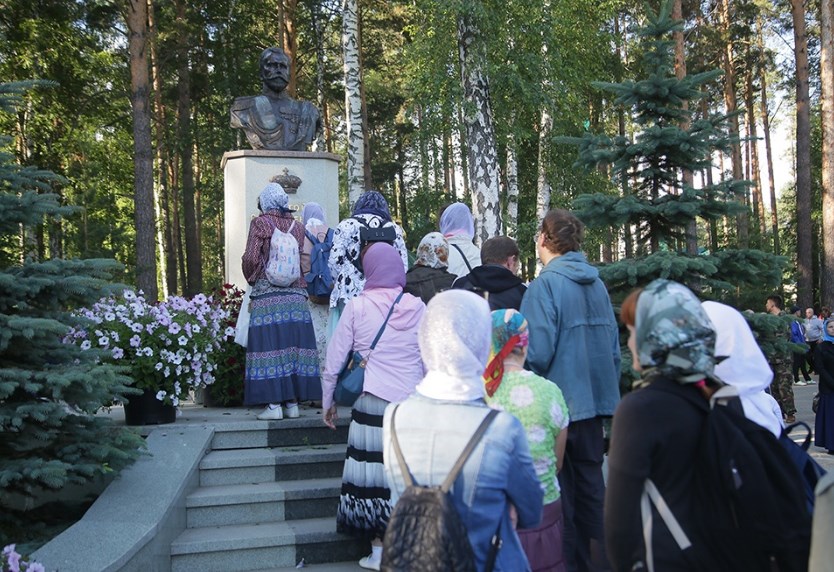 Около семи часов утра колонна крестного хода во главе с духовенством достигла монастыря во имя святых Царственных Страстотерпцев на Ганиной яме. Паломников и духовенство братия монастыря встречала колокольным звоном.