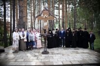 У бывшей шахты теперь стоит Поклонный крест. Побывавшие здесь участники конференции вознесли новомученикам слова молитвы. Помолились гости святой преподобномученице Елисавете и в храме при монастыре. Полюбовались и строящимся храмом, уже увенчанным пятью золотыми куполами и крестами.