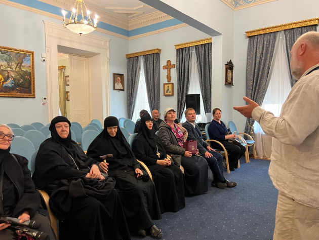 Экскурсию провел директор музея Григорий Маневич. Гости с интересом познакомились с историей русского паломничества на Святую Землю, ролью ИППО в развитии русского присутствия на Ближнем Востоке. Рассказами о прошлом и настоящем русских монастырей в Иерусалиме поделились настоятельница монастыря святой равноапостольной Марии Магдалины в Гефсимании игумения Елисавета (Смелик) и монахина Магдалина (Проферансова).