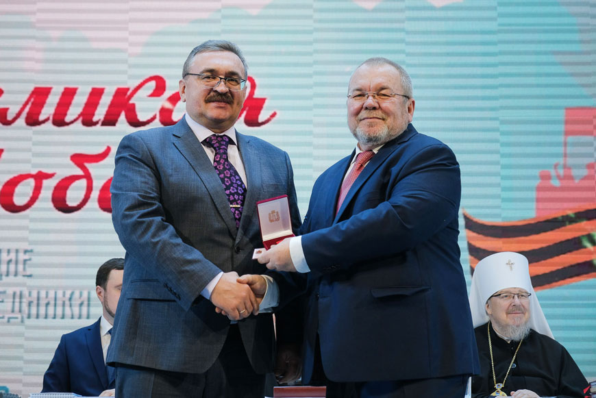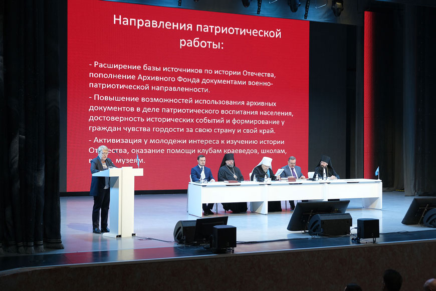 Управляющий Минусинской епархией, член ИППО епископ Никанор сначала напомнил о тяжёлых потерях, понесённых народом за годы войны, и значении сохранения памяти о ней. «Но, несмотря на эти испытания, Россия не потеряла того лучшего, что всегда было в русском и других народах, населяющих её просторы, которая в этой страшной беде сумела собрать все свои силы, проявить невероятное мужество и колоссальное терпение», – отметил владыка Никанор.
