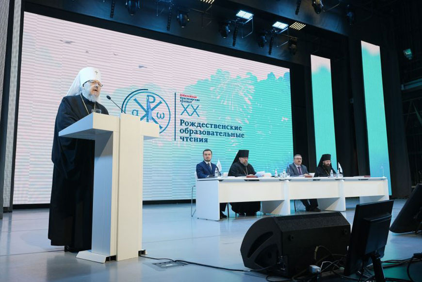 На торжественном открытии 20-х Красноярских краевых Рождественских образовательных чтений с приветственным словом выступил председатель оргкомитета чтений – председатель Попечительского Совета Красноярского отделения ИППО митрополит Красноярский и Ачинский Пантелеимон: