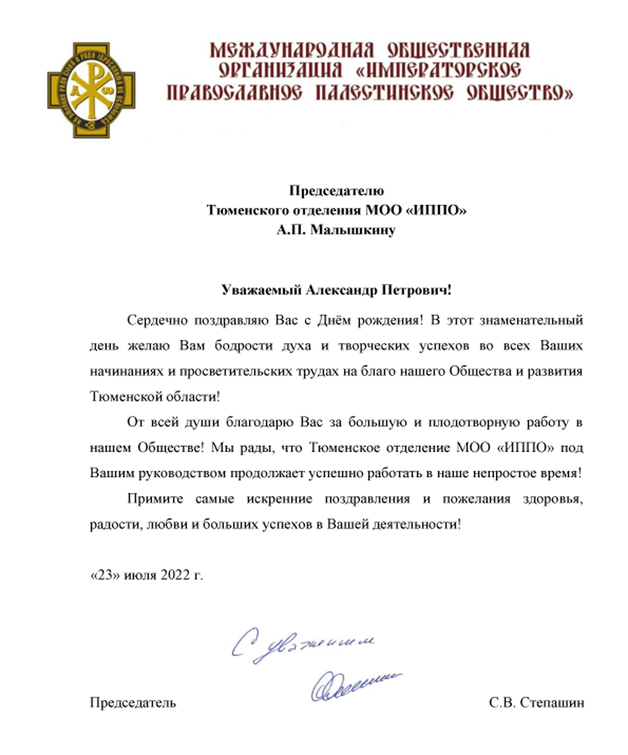 23 июля 2022 года день рождения отмечает руководитель Тюменского отделения ИППО Александр Малышкин.