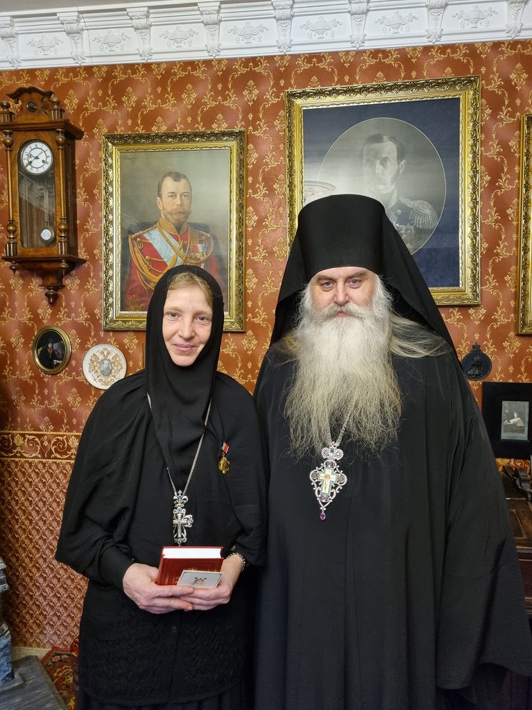 Матушка Магдалина сердечно поблагодарила о. Тихона за такой бесценный дар для ее обители. Также архимандрит Тихон вручил ей памятную медаль, выпущенную в честь 350-летия основания Нижегородской епархии.