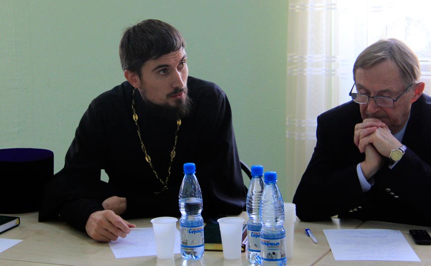 В обсуждении проблематики новейшей отечественной истории приняли участие заместитель начальника управления информационной политики и общественных отношений администрации г. Шахты, кандидат медицинских наук Станислав Сергеев, председатель епархиального отдела религиозного образования и катехизации протоиерей Сергий Яценко, епархиальный древлехранитель, старший преподаватель кафедры православной культуры и теологии, действительный член ИППО Илья Шарков, старший преподаватель кафедры конструирования, технологии и дизайна Людмила Томилина, благочинные округов, председатель епархиального миссионерского отдела, член епархиальной комиссии по канонизации святых и сохранении памяти новомученников иерей Иоанн Трофимов, исполнительный директор Ассоциации предпринимателей Ростовской области Михаил Макаров, кандидат исторических наук, доцент Валерий Бондарев, представитель казачества (общество «Донцы») Дмитрий Суворов, студенты Института сферы обслуживания и предпринимательства (филиал) ДГТУ в г. Шахты, участники научного кружка «Православный Восток» кафедры православной культуры и теологии Дарья Слатвицкая и Владислав Тушминцев и другие.