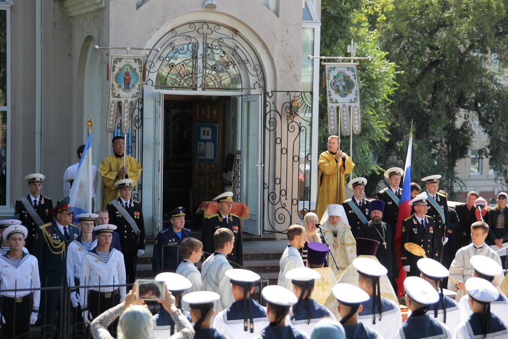 С приветственным словом к собравшимся обратились начальник Управления по работе с верующими военнослужащими Вооруженных сил РФ Александр Суровцев, вице-президент Фонда святого мученика Вонифатия, действительный член ИППО Наталья Мезенцева, командующий Приморской флотилии разнородных сил контр-адмирал Вадим Кулить. Митрополит Вениамин в сослужении духовенства Владивостокской епархии совершил молебен. Офицеры, личный состав и присутствующие приложились к святыне. Принесение ковчега с мощами святых осуществлено попечением Благотворительного фонда святого мученика Вонифатия совместно с общественной организацией «Московские суворовцы».