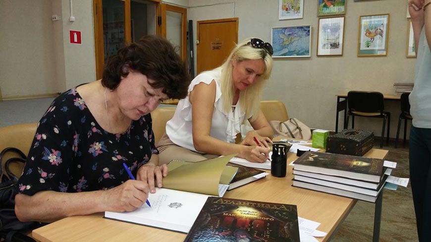 Дети встретились с авторами книг популярной детской серии «Атлантиада». Наталья Цуканова и Ольга Шейпак рассказали много интересного – и о возрасте египетских пирамид, и о загадочном языке, на котором люди разговаривали в доисторическое время, и о тайне Александра Македонского, волнующей учёных всего мира.
