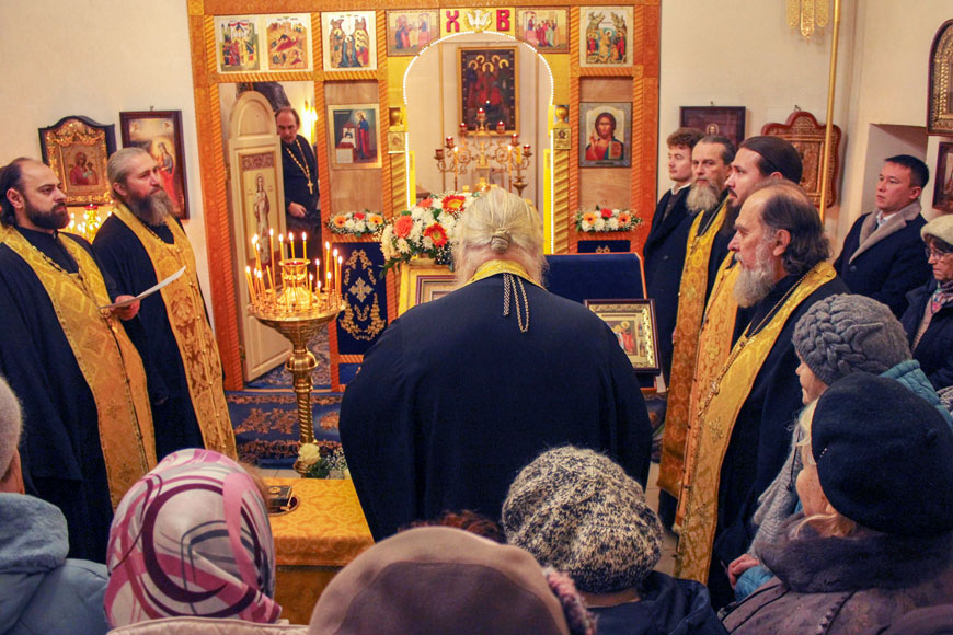 По благословению митрополита Тверского и Кашинского Саввы молебен возглавил протоиерей Валерий Ильин, благочинный Конаковского церковного округа Тверской епархии, в сослужении духовенства Конаковского благочиния. По окончании верующие приложились к иконе и частице мощей святителя Луки.