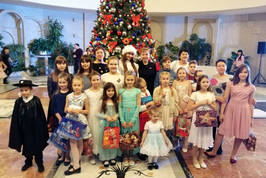 Рождественский праздничный подарок - посещение Новогодней ёлки в «Президент-Отеле» для детей и сопровождающих родителей организовала действительный член Императорского Православного Палестинского Общества, президент Благотворительного фонда «Время Возрождения» Антонина Стороженко.
