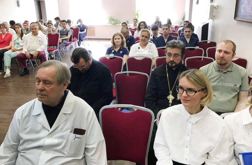 Со словами приветствия выступили заместитель главврача ГКБ N57 к.м.н. М.А. Куценко, член Совета ИППО игумен Серафим (Кравченко), секретарь Исполкома Общества православных врачей России к.м.н. В.К. Севостьянов, протоиерей Максим Синюк.