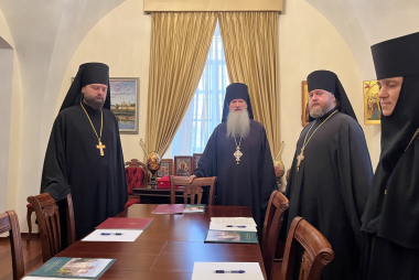 Его Высокопреподобию сослужили: клирик Горненского монастыря иеромонах Иннокентий (Беспалов), клирик Казанской митрополии иеромонах Павел (Кузнецов), клирик РДМ диакон Илия Драчук и клирик Московской митрополии диакон Дионисий Фурсов.