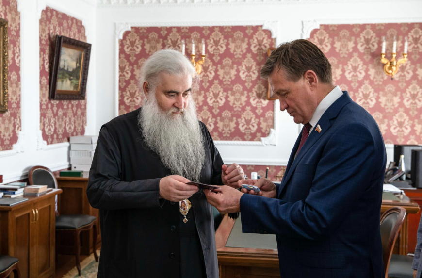 Член Совета ИППО Сергей Рябухин вручил удостоверение члена Общества митрополиту Симбирскому и Новоспасскому Лонгину