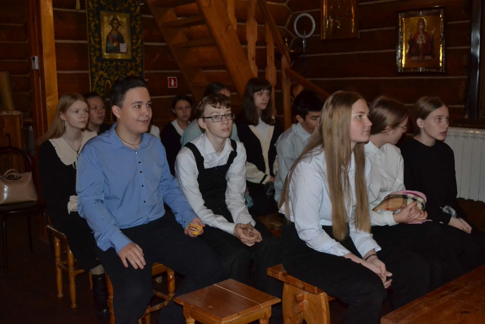Священник рассказал о житии Отечественных святых, пожертвовавших собой ради будущего России, о любви и преданности Православию во времена Александра Невского, когда запад хотел видеть нас в католичестве или вовсе безбожниками, как во времена революций XX века, где в мученичестве просияла Преподобномученица Великая княгиня Елисавета Феодоровна. Матушка Анна подарила ребятам иконочку святителя Луки, а отец Анатолий тепло поблагодарил юношей и девушек 8 класса, педагога школы № 1 Любовь Дружинину и выразил надежду на долгую дружбу.