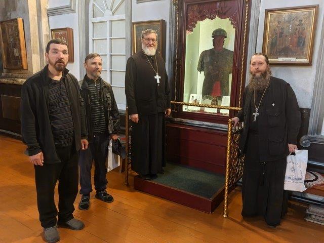 На память о посещении игумен Варнава подарил протоиерею Георгию икону прп. Далмата Исетского и брошюру о Далматовском монастыре. Была сделана общая фотография.