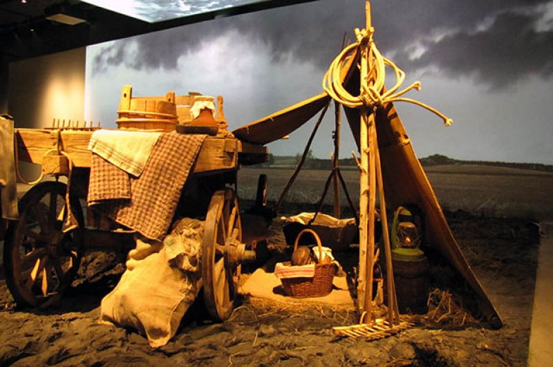 Первая часть экспозиции выстроена особым образом: посетитель может погрузиться в атмосферу Советского Союза 1941 года. Здесь и беззаботные весенние улочки с магазинами, и тяжёлая летняя эвакуация в поезде, и попытки людей приспособиться к осенней деревне, и суровая зима в избе. В музее собрана масса чудом сохранившихся предметов труда и быта, одежды и техники.