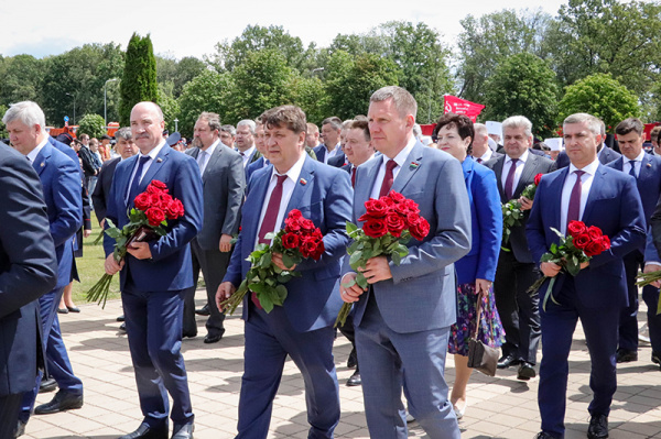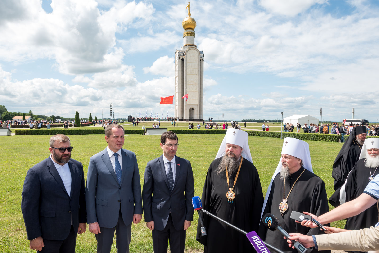 Возложить цветы и почтить память павших воинов минутой молчания на Третье ратное поле к памятнику Победы «Звонница» приехали полномочный представитель президента РФ в ЦФО Игорь Щеголев, губернаторы Курской, Орловской, Воронежской и Калужской областей, актер Михаил Пареченков.